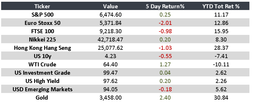 Global markets reacted this week to renewed trade tensions, macroeconomic revisions, and political moves that increased uncertainty over the global economic outlook. In the U.S., stronger-than-expected data was overshadowed by political interference. In Europe, confidence indicators showed a fragmented recovery. Asia remains cautious amid weak industrial growth, while Latin America faces rising trade and political pressures.